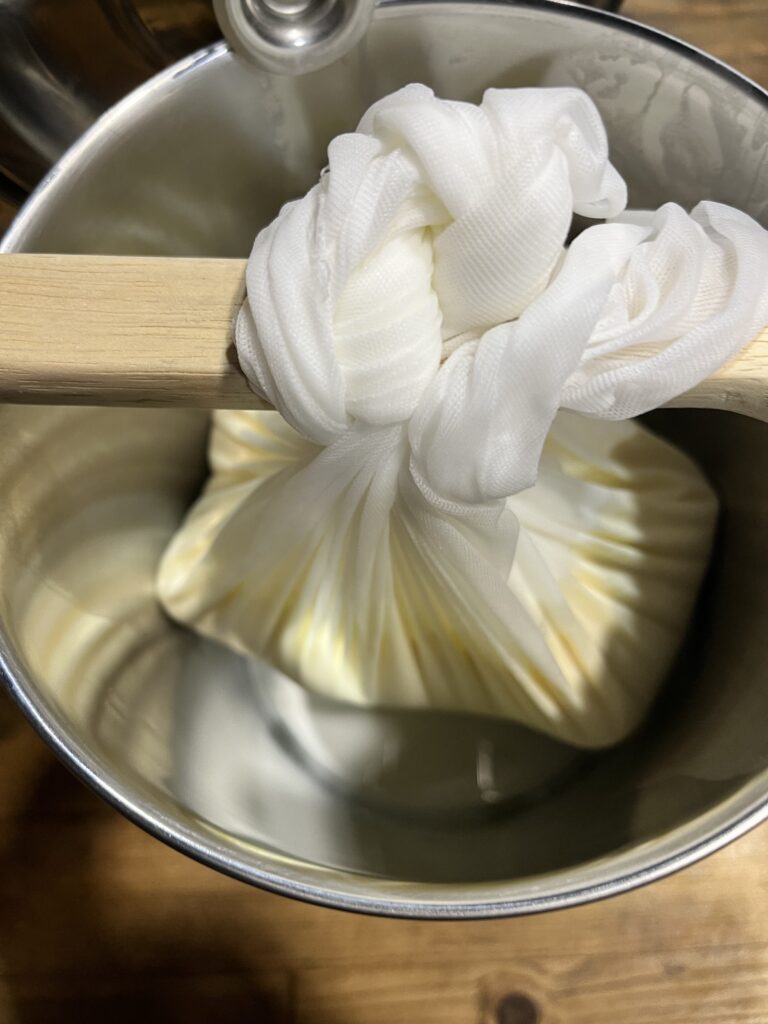 ホエーを使ったリコッタチーズ作り。